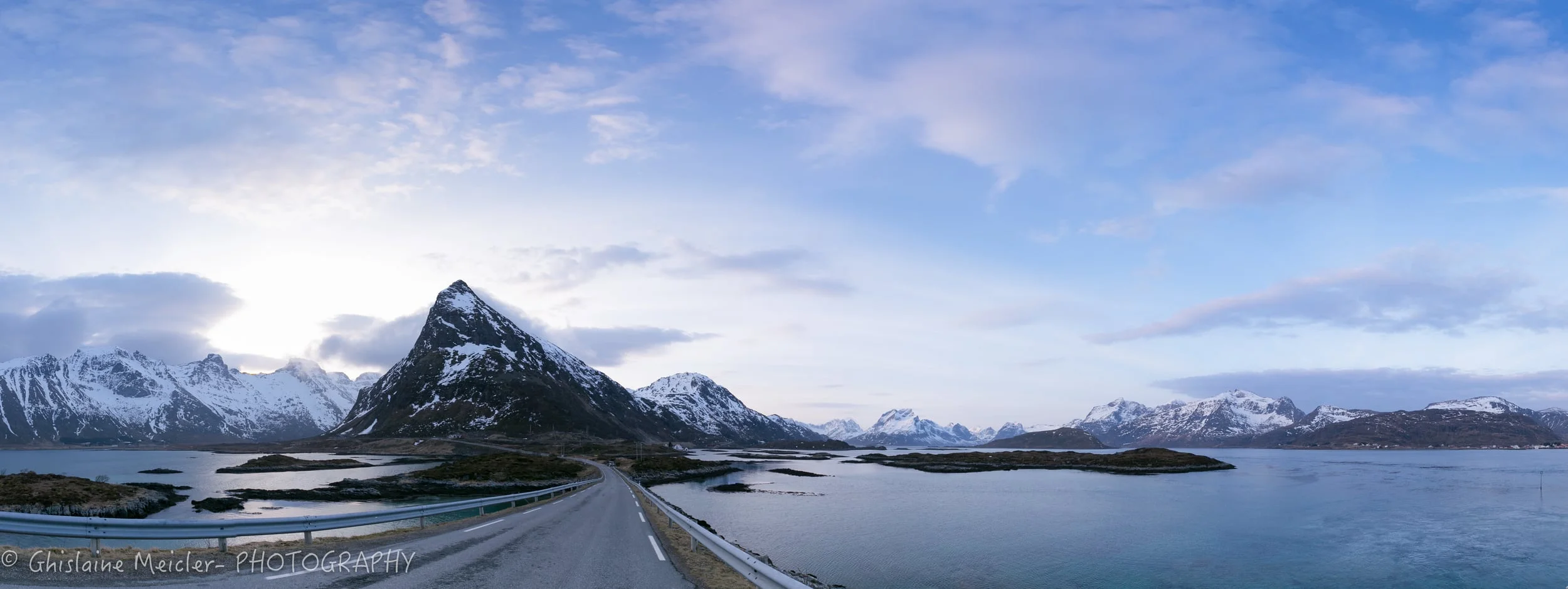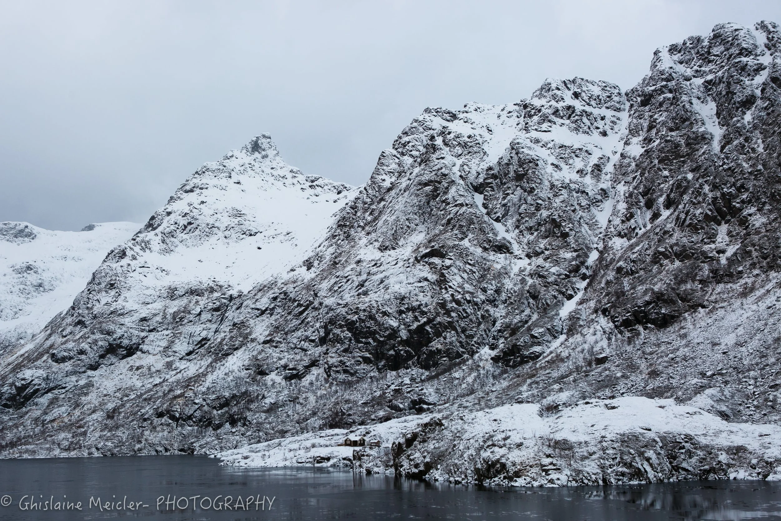 Les LOFOTEN, c'est de l'eau partout, avec des plages de sable blanc, des lacs gelés, des fjords, des montagnes austères et impressionnantes, recouvertes d'une fine couche de neige qui réhausse le noir du granit. Bref, un paysage brut et hostile mais tellement envoutant.