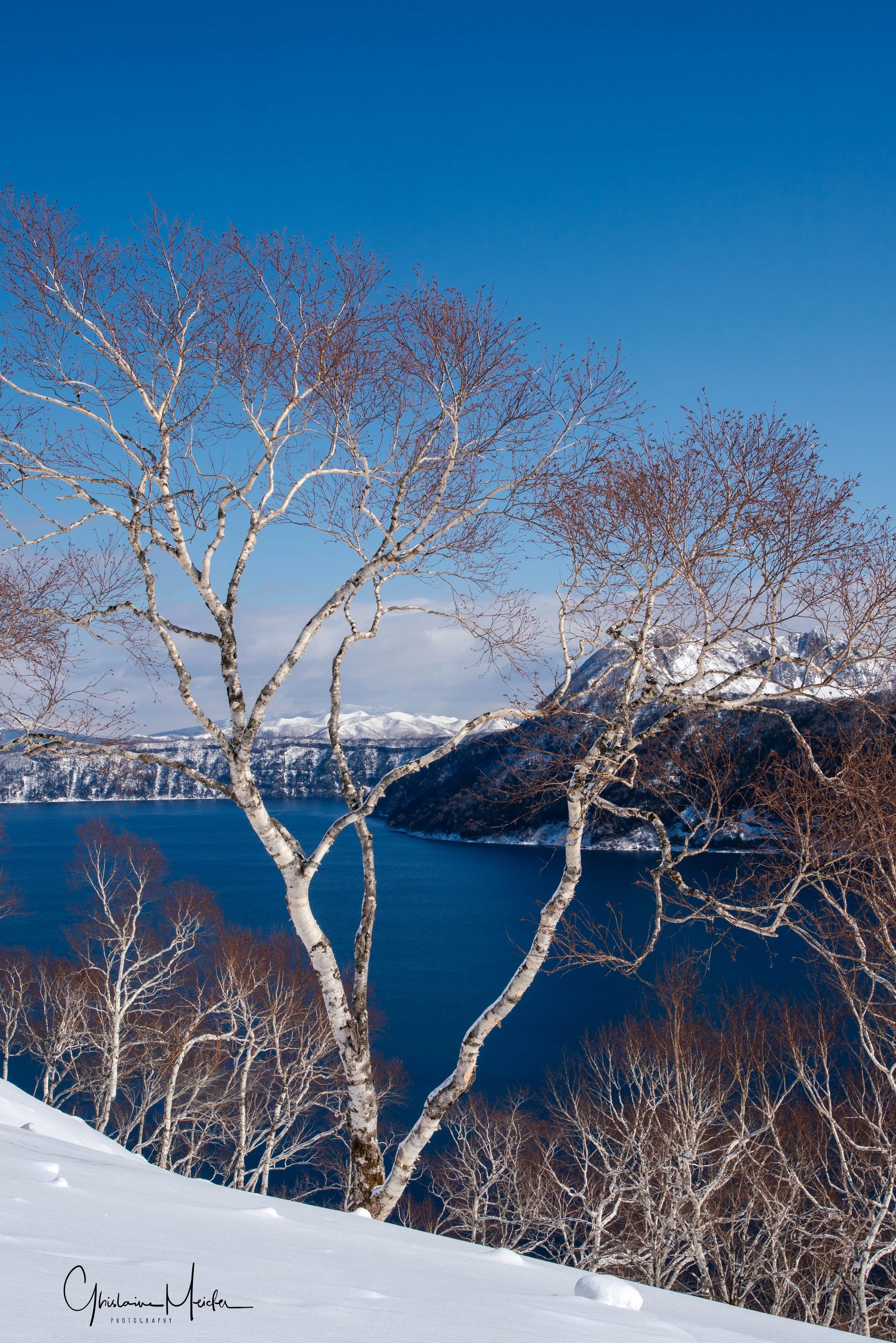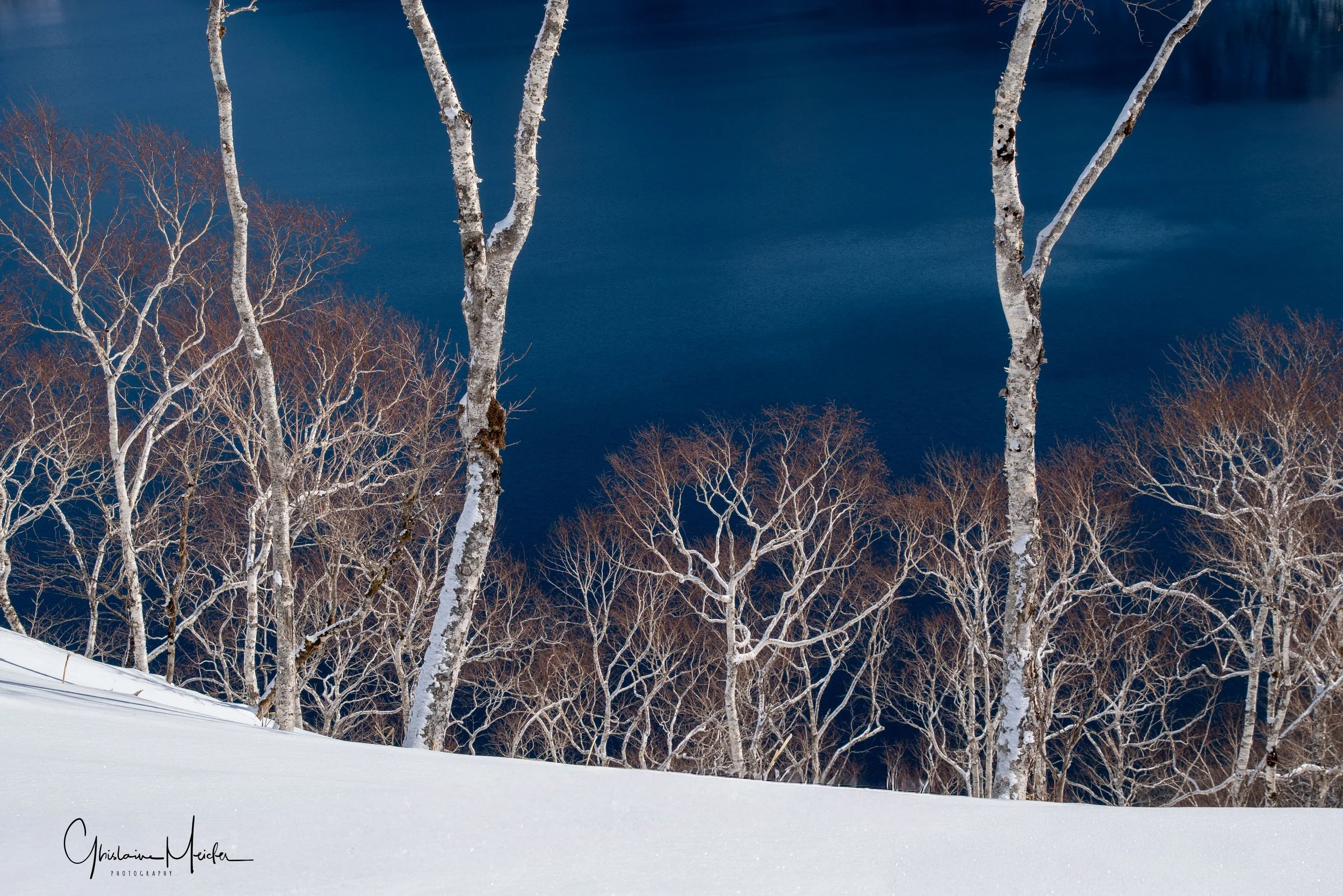 Direction le lac Mashu, magnifique lac de caldéra, célèbre pour la couleur de son eau, le « bleu Mashu », une teinte soutenue due à ses eaux incroyablement claires et profondes. Avec au premier plan, les arbres qui se dressent comme des sculptures gelées, leurs branches recouvertes d’une fine couche de glace. Paysage à couper le souffle, même si nous n'avons pas pu aller là où nous voulions car la route est fermée.