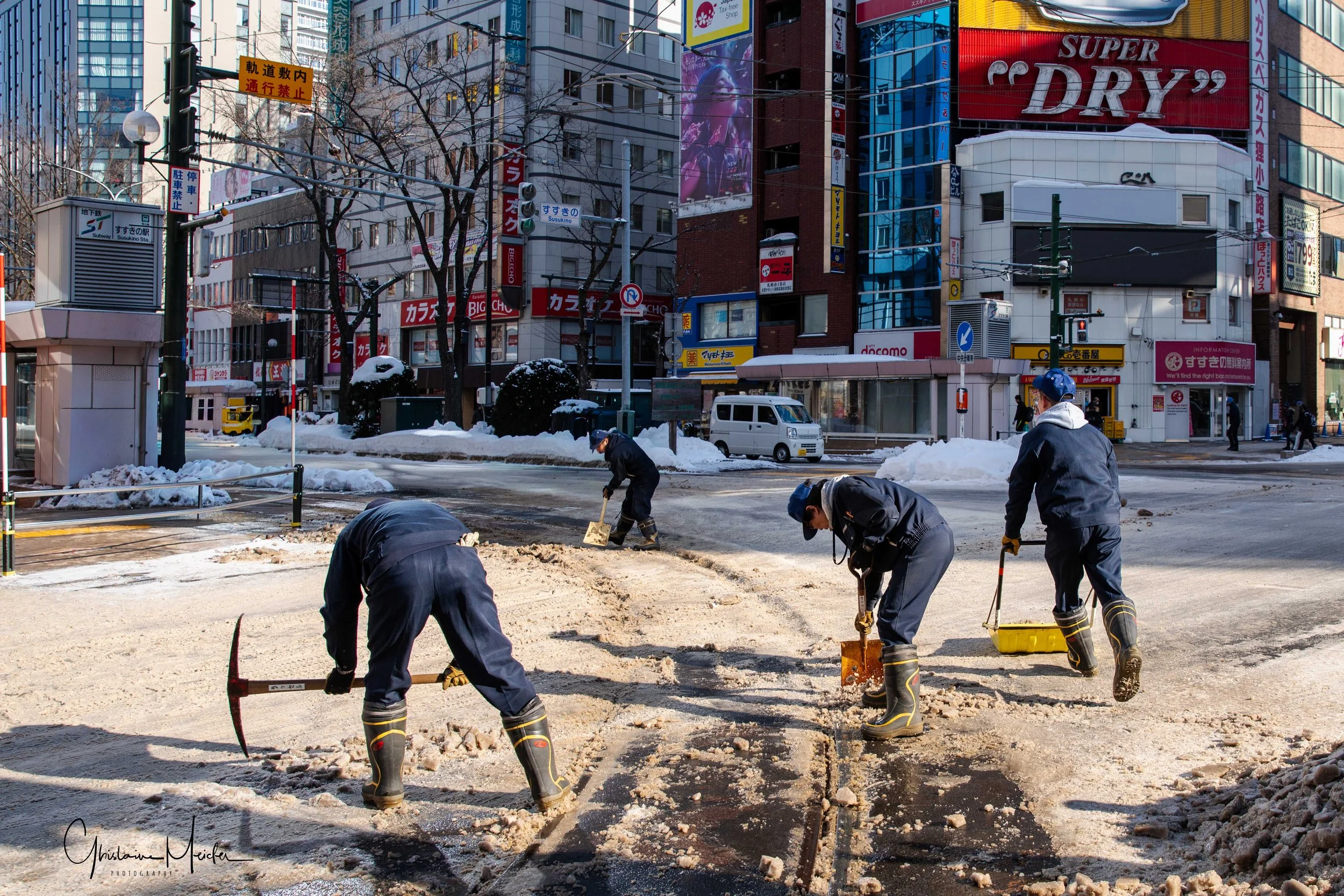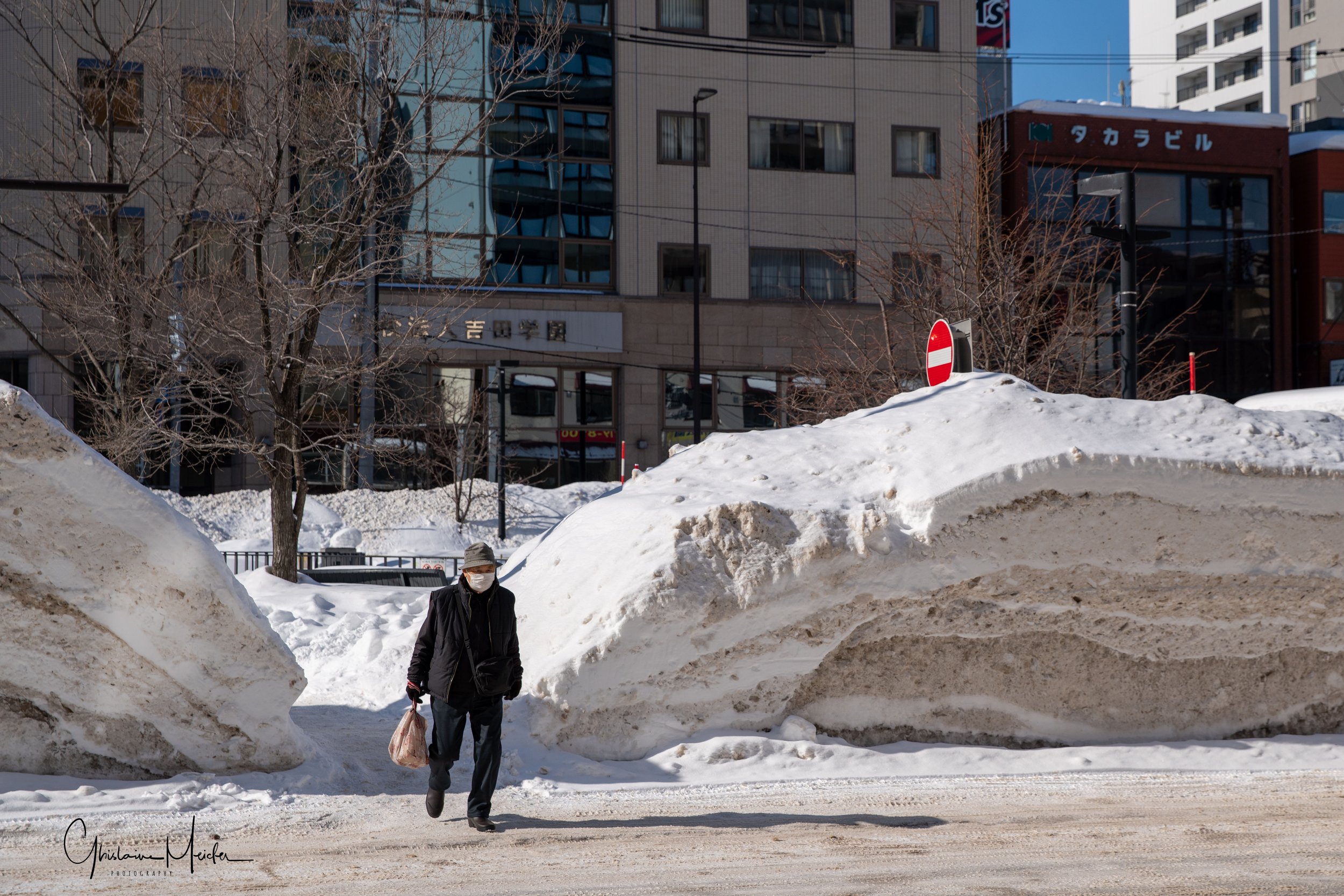 Le lendemain, nous continuons de parcourir les rues de Sapporo sur des trottoirs enneigés et hyper glissants. Des distributeurs jalonnent les trottoirs et nous avons mis du temps à comprendre ce qu’ils contenaient. En fait, ce sont des sachets de sable que les japonais utilisent pour éviter de glisser.