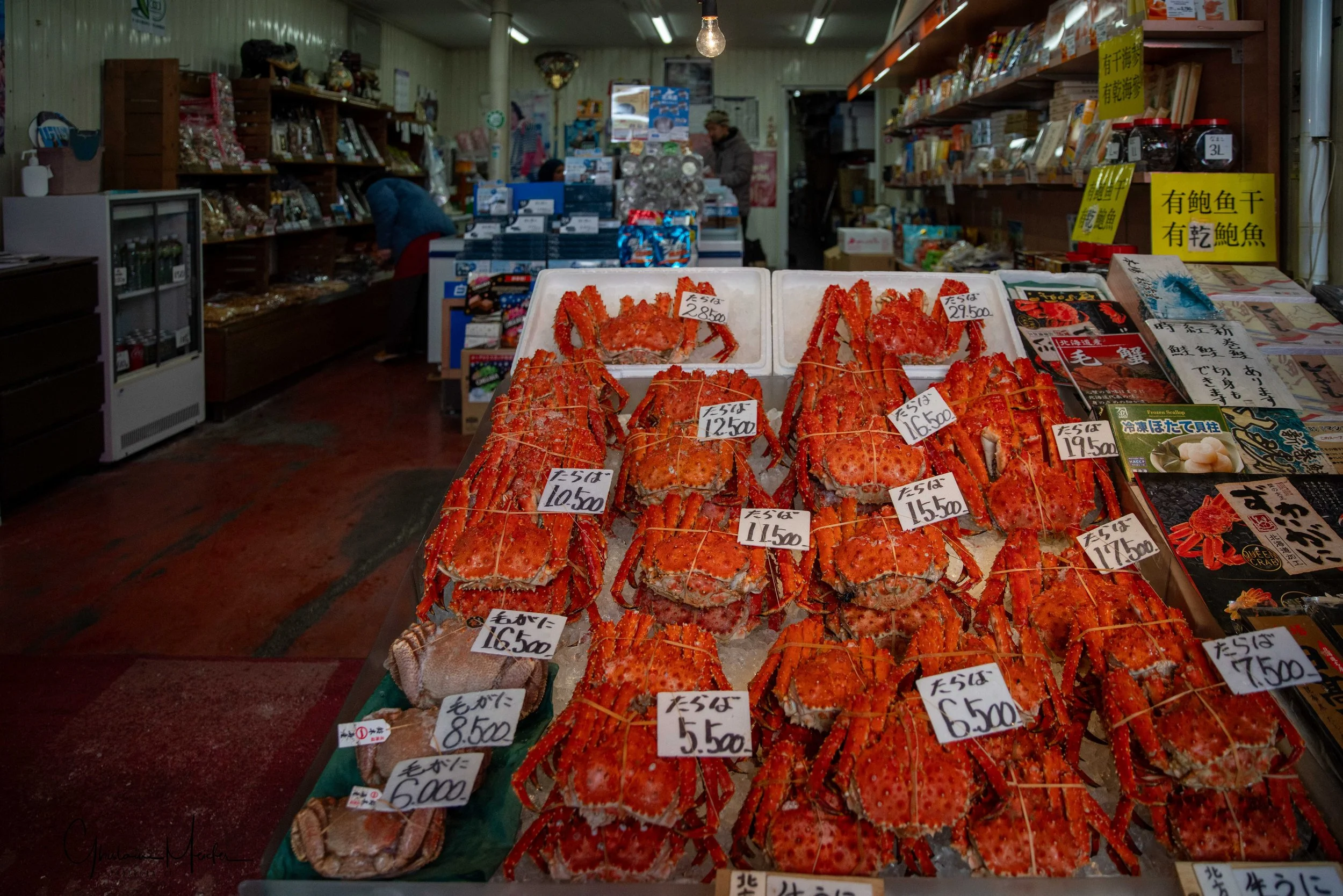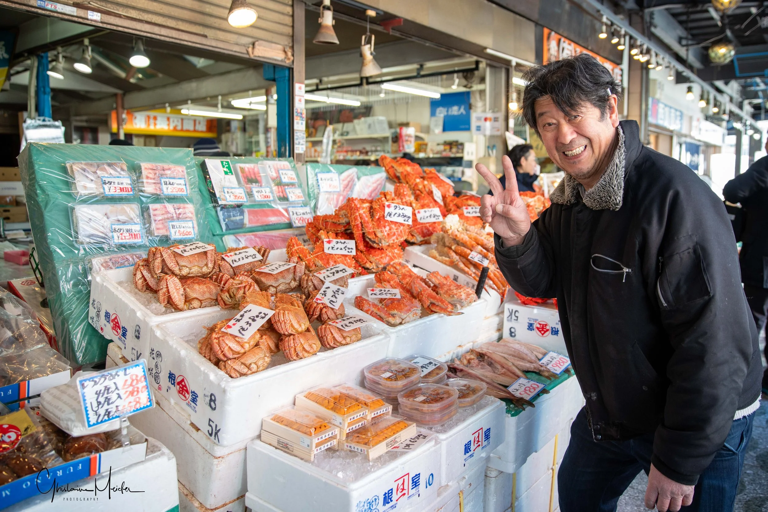 Un des meilleurs endroits pour s’en rendre compte est le marché de Nijo. C’est un endroit riche en couleurs et en odeurs de la mer, rythmé par les cris des vendeurs de poissons et où les prix des produits défient toute concurrence !! Et s’il y a une spécialité qui se démarque au marché de Nijo, c’est sûrement le crabe. On peut en effet y trouver le crabe royal, qui se distingue par sa couleur rouge vive et sa taille démesurée, et le crabe d’Hokkaido, plus petit et plus savoureux, particulièrement apprécié par les japonais. Pour satisfaire les touristes, les marchands proposent de choisir un crabe et de le cuisiner sur place. Nous n’allons pas nous en priver, un régal ….