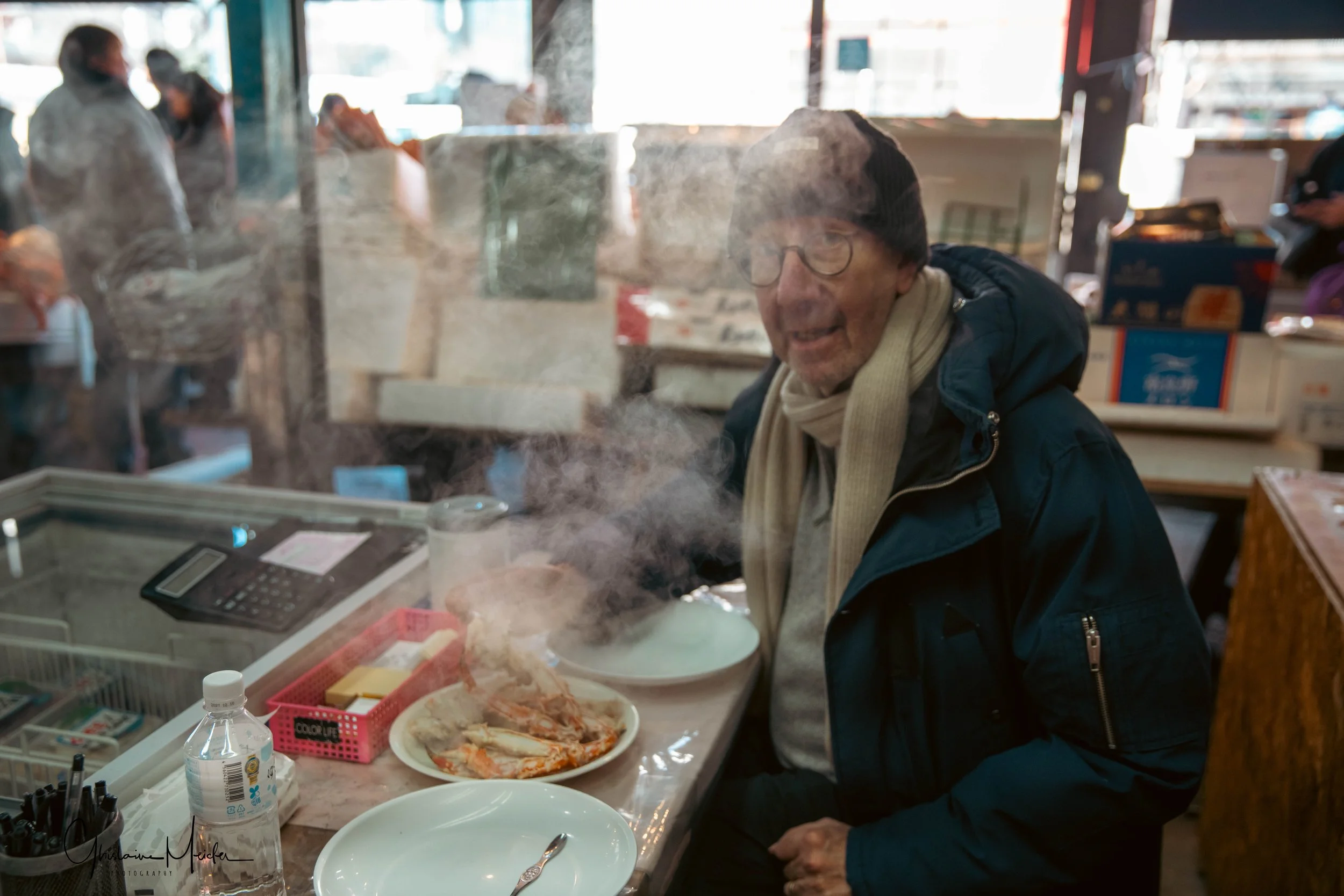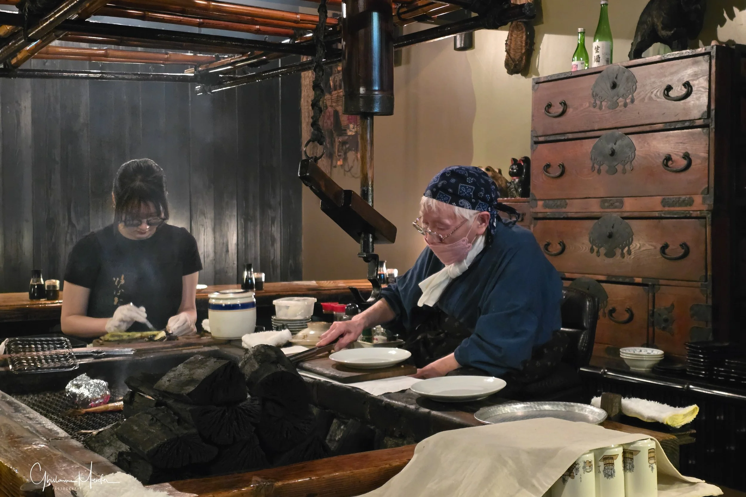 Le soir, nous dinons au restaurant emblématique de Kushiro, le Robata, tenu depuis des décennies par une vieille dame qui propose une cuisine autour du robatayaki (technique locale de grillade lente au charbon). Installée devant son grill, elle élabore les menus à base de produits de la mer fraîchement péchés, sous les yeux des clients installés au comptoir. A elle seule, elle gère une douzaine de clients sans que l’on ait besoin d’attendre!!!