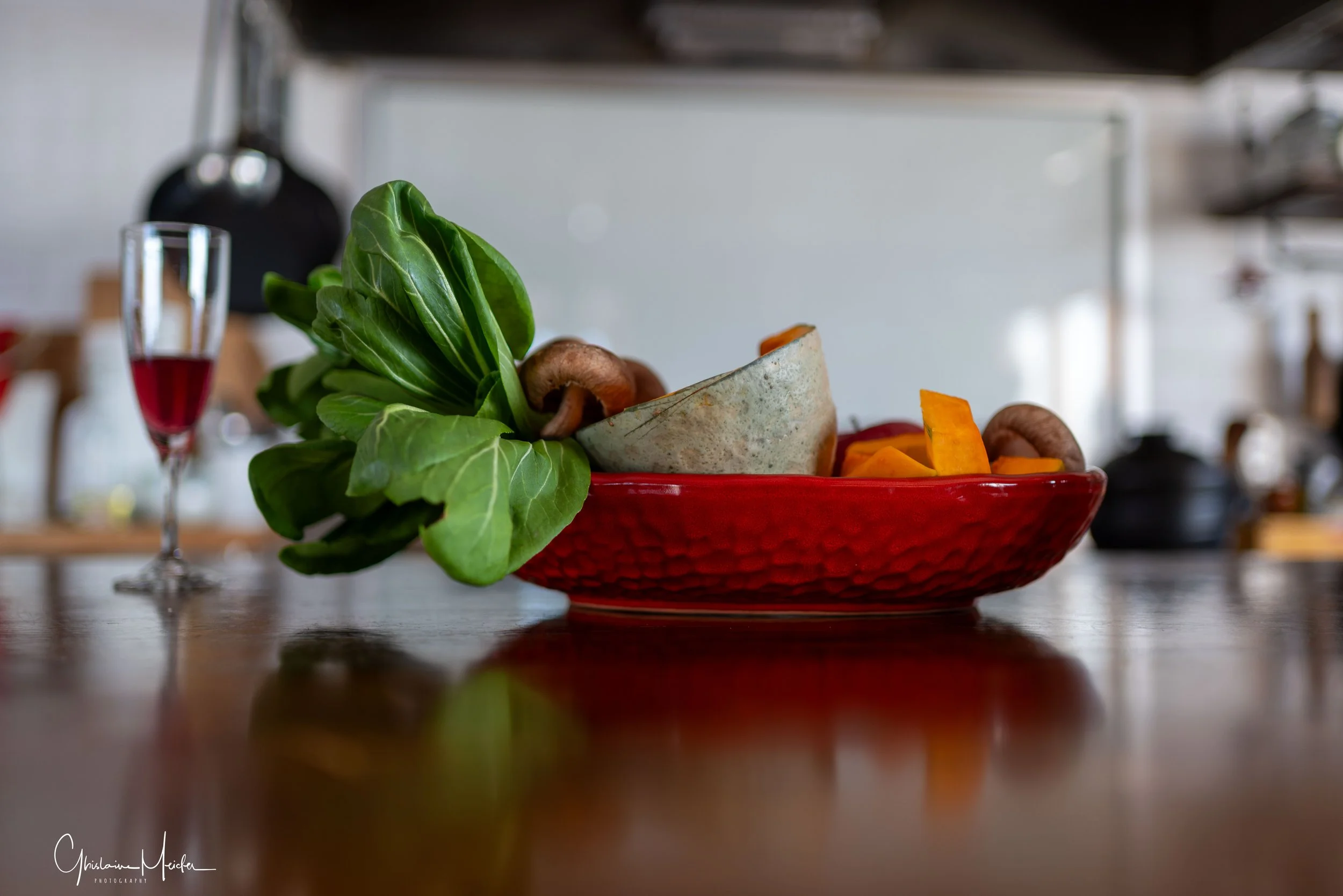 Après un verre d’accueil à base de grenade, de vinaigre d’ Ume et d’eau gazeuse, Ioan commence par nous expliquer l’importance de la mise en place à la japonaise de tous les ingrédients, soigneusement lavés, pesés et disposés dans des petits plats individuels. Puis nous procédons à la découpe des légumes, des poissons et nous apprenons la technique de coupe avec de véritables couteaux japonais, en appliquant un angle de coupe spécifique pour obtenir des tranches fines et régulières.