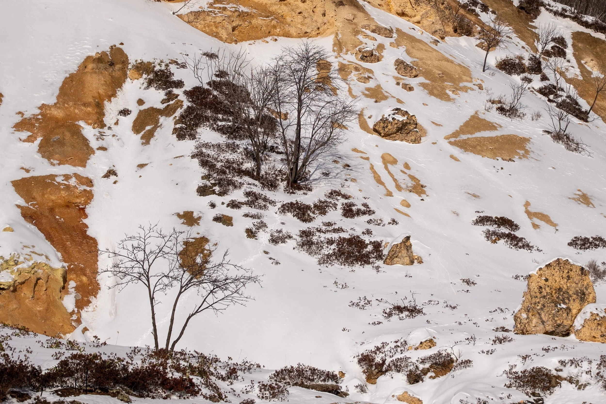 Ensuite, nous retrouvons le Japon sauvage avec le Parc National de Daisetsuzan. (Son nom signifie "grandes montagnes enneigées", faisant ainsi écho aux cinq montagnes dont il est composé). Cet endroit est qualifié de paradis blanc arctique à Hokkaido, il est célèbre pour ses chutes de neige abondante et son froid extrême avec des températures atteignant -20 degrés.