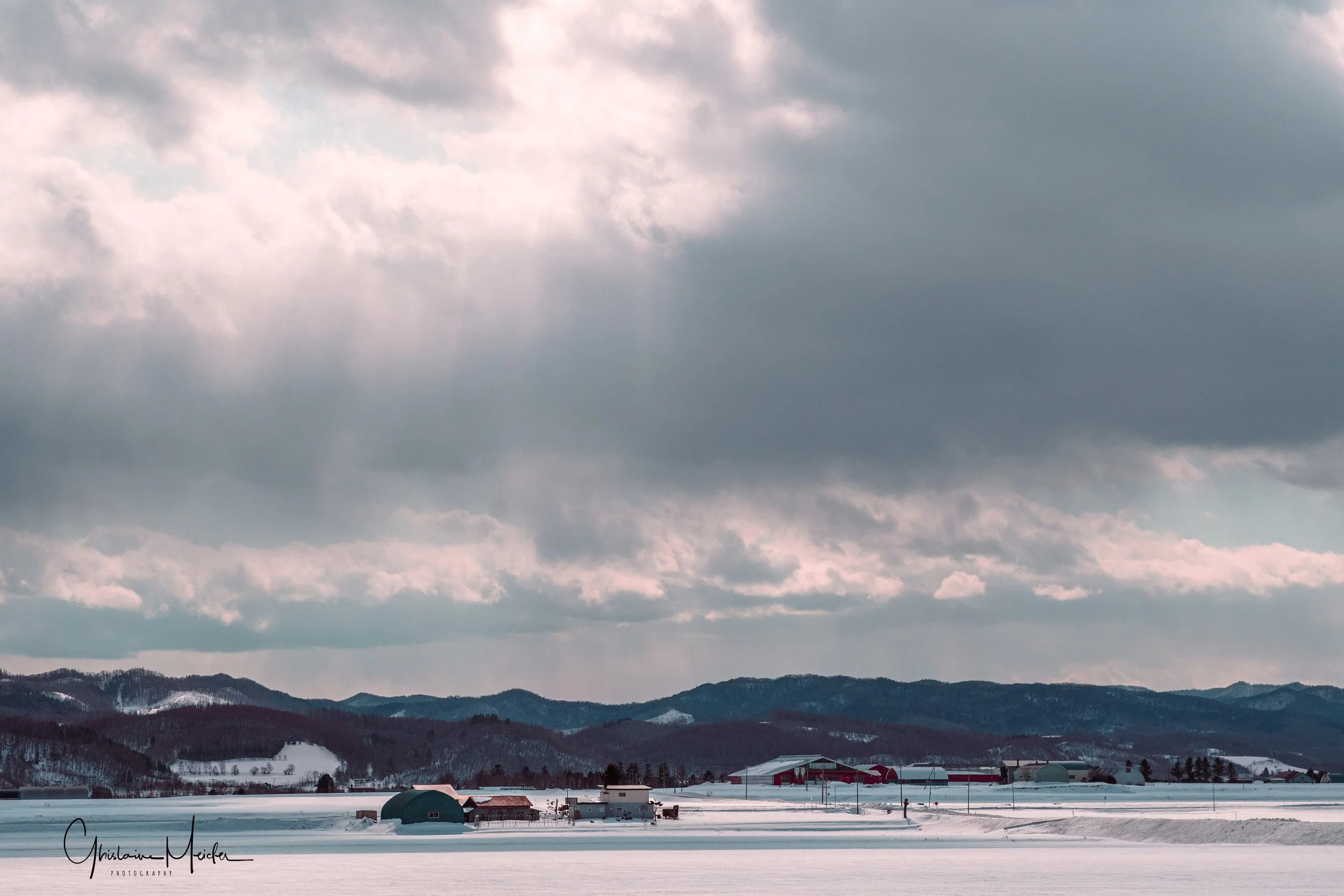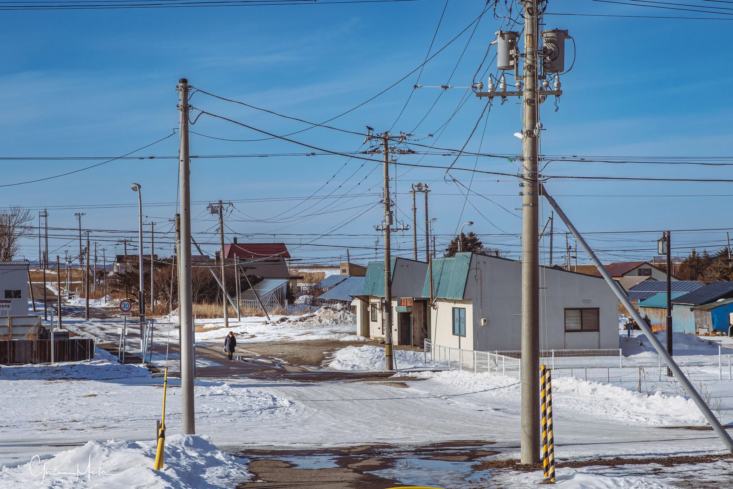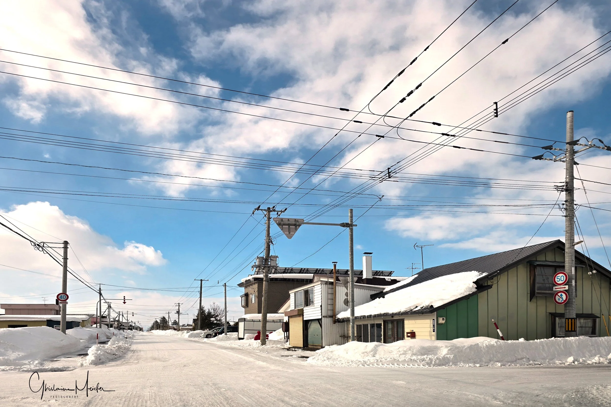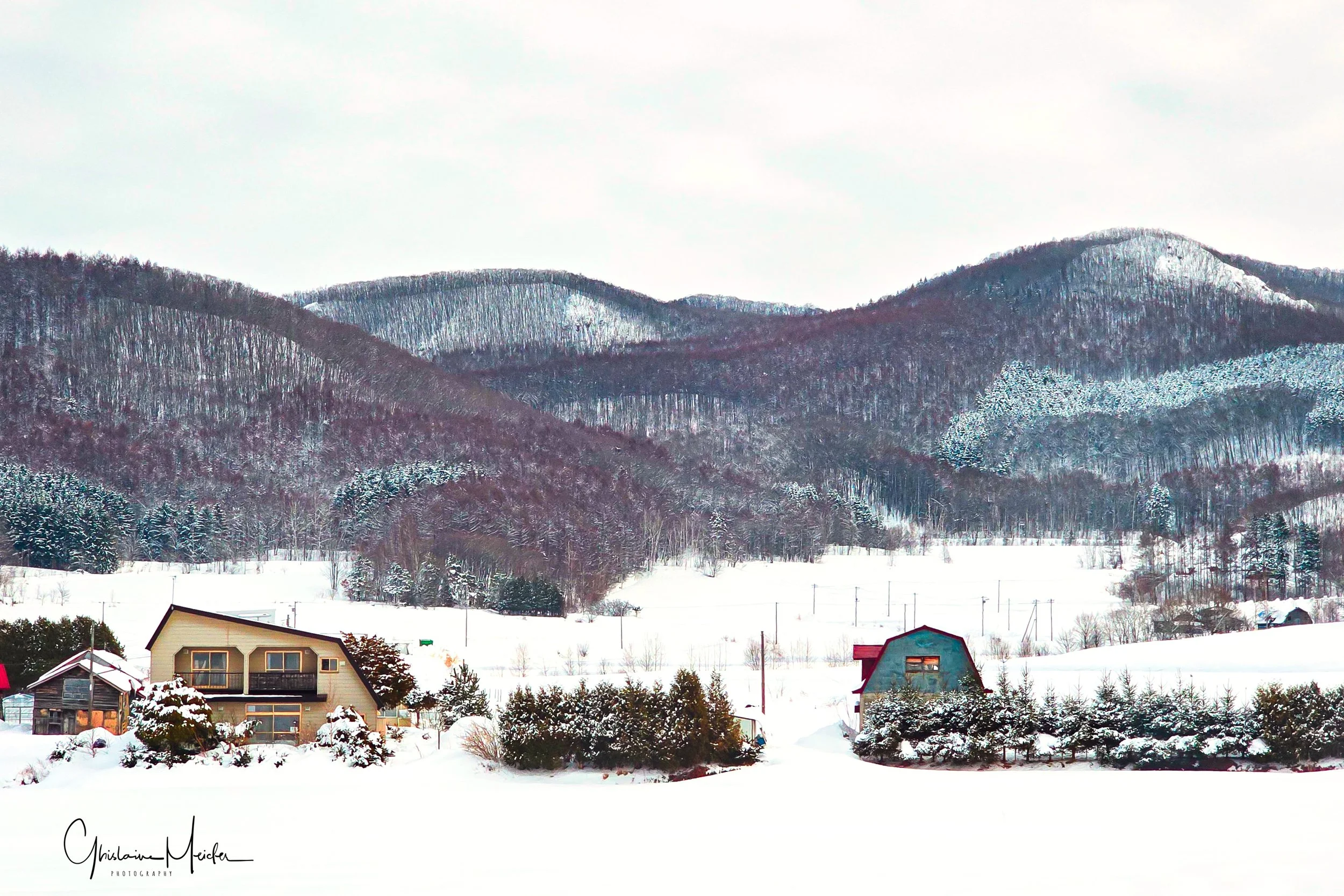 En s’éloignant de la côte, on arrive dans une région très agricole, comme le prouvent ces immenses étendues de neige recouvrant les champs de culture, et ces nombreuses fermes aux toits colorés. Contraste entre les zones surpeuplées du Sud du Japon, et ces zones agricoles où la densité ne dépasse pas les 37 habitants au Km2.