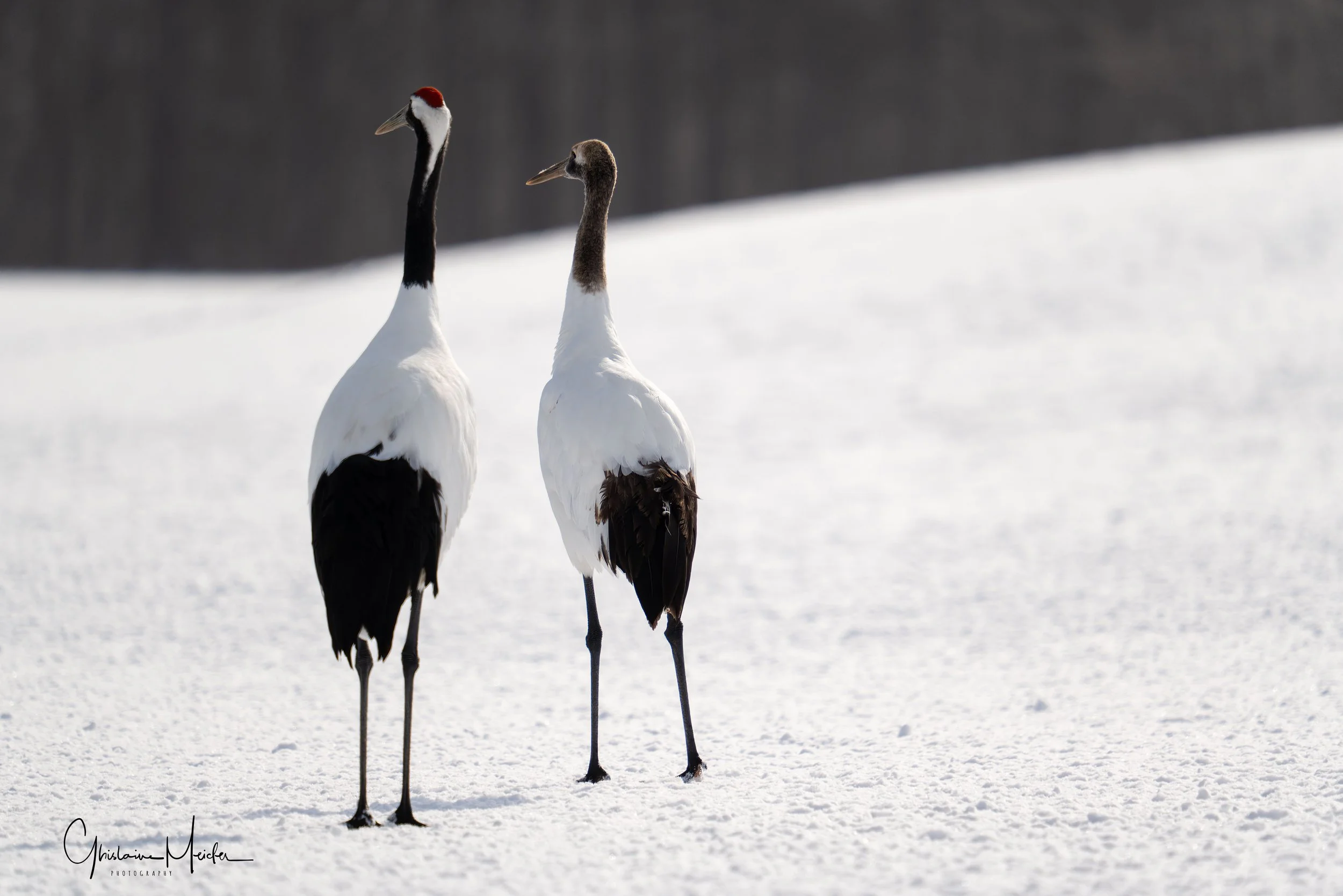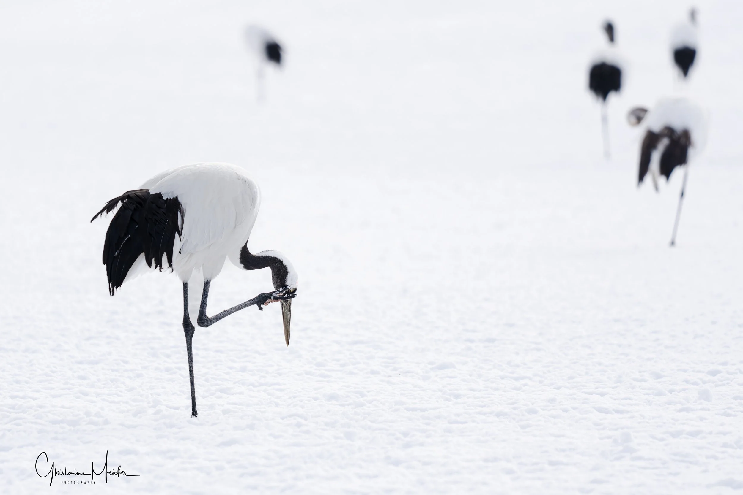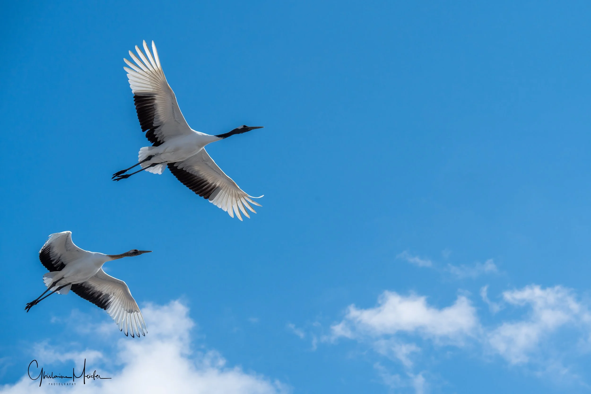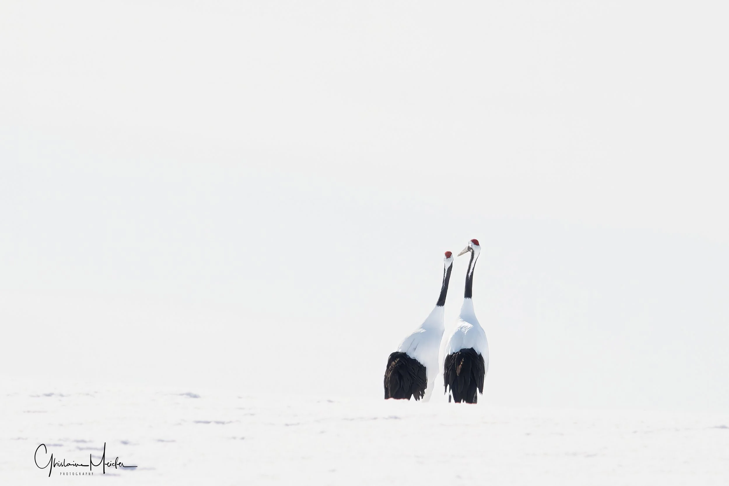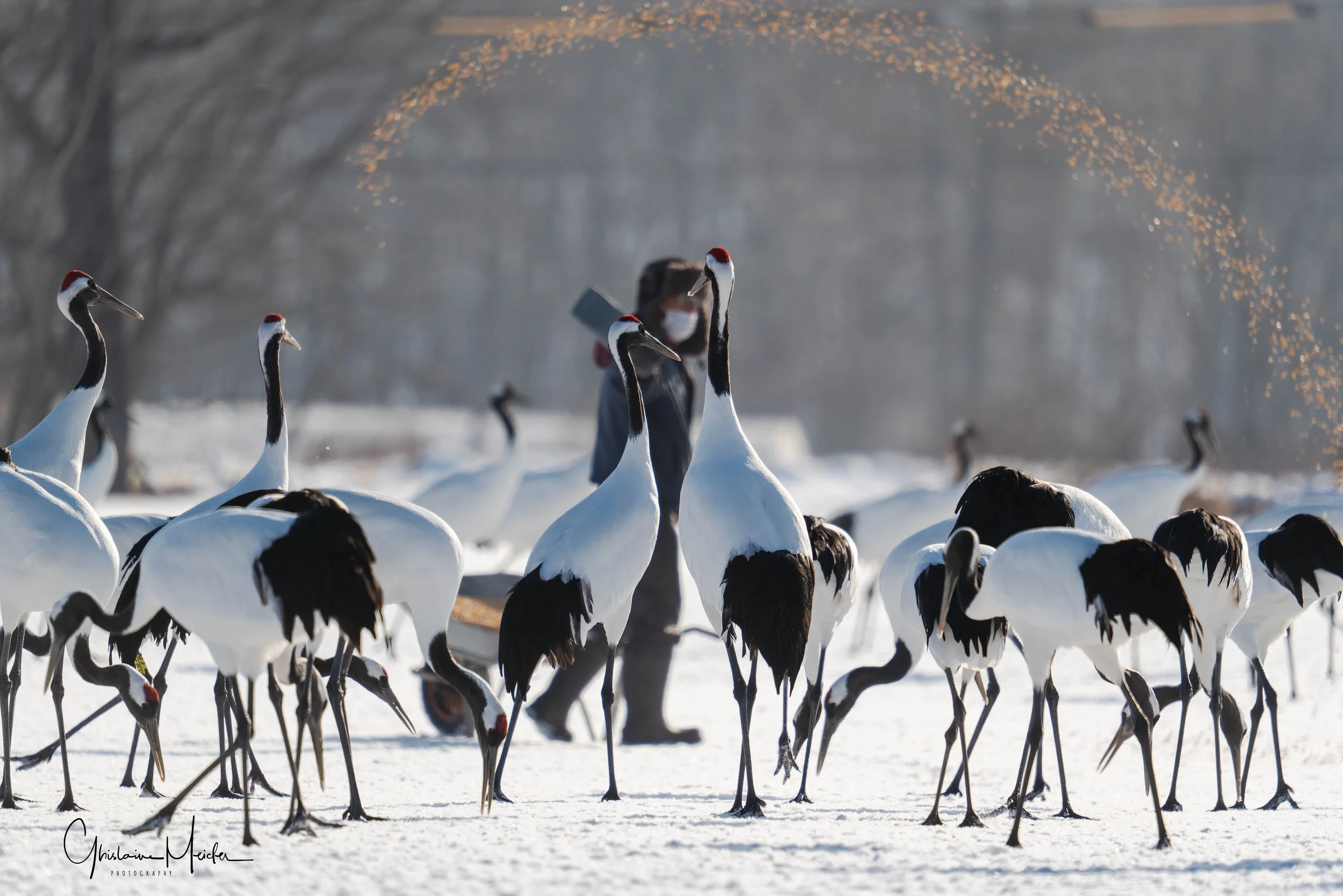 Le lendemain, après une courte nuit nous nous rendons sur les sites de nourrissage des grues. Suivant les conseils d’un ami photographe qui nous a conseillé d’arriver tôt, nous nous levons à 4H pour assurer. Quelle bonne idée!! Seuls sur place, nous avons fini notre nuit dans la voiture et c’est seulement vers 8h que les photographes ainsi que les grues sont arrivées. On saura pour demain que l’on peut faire une grasse matinée.
