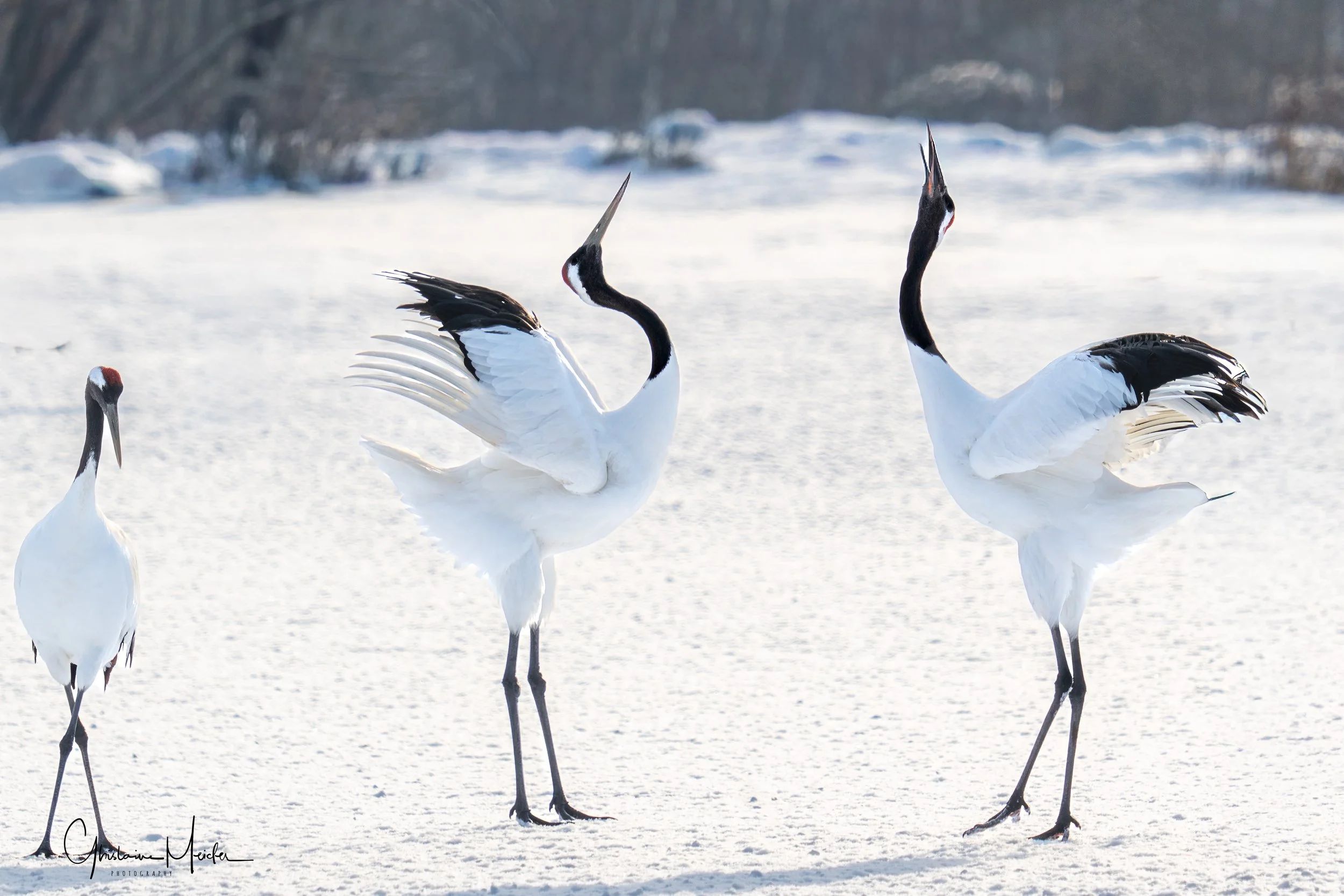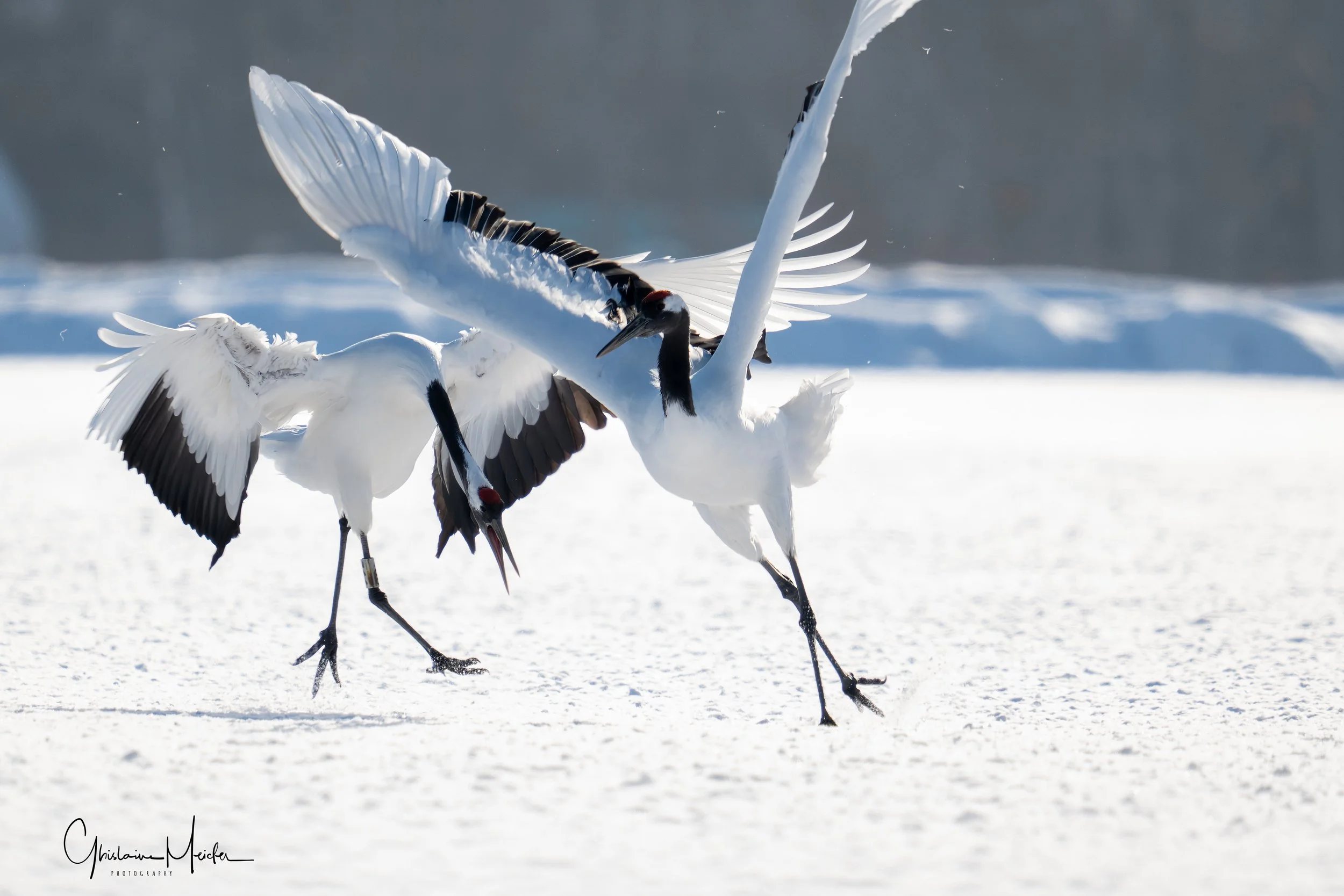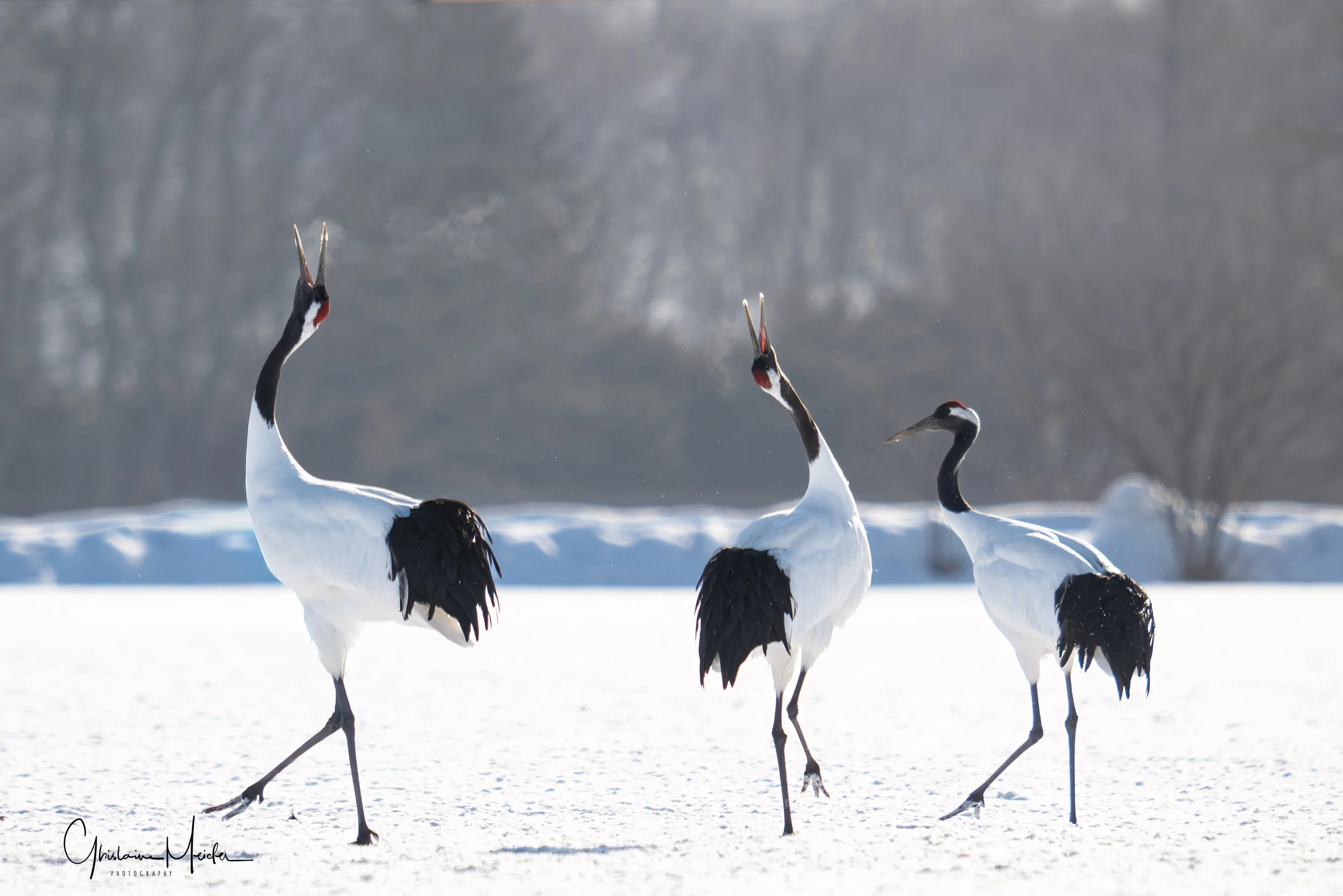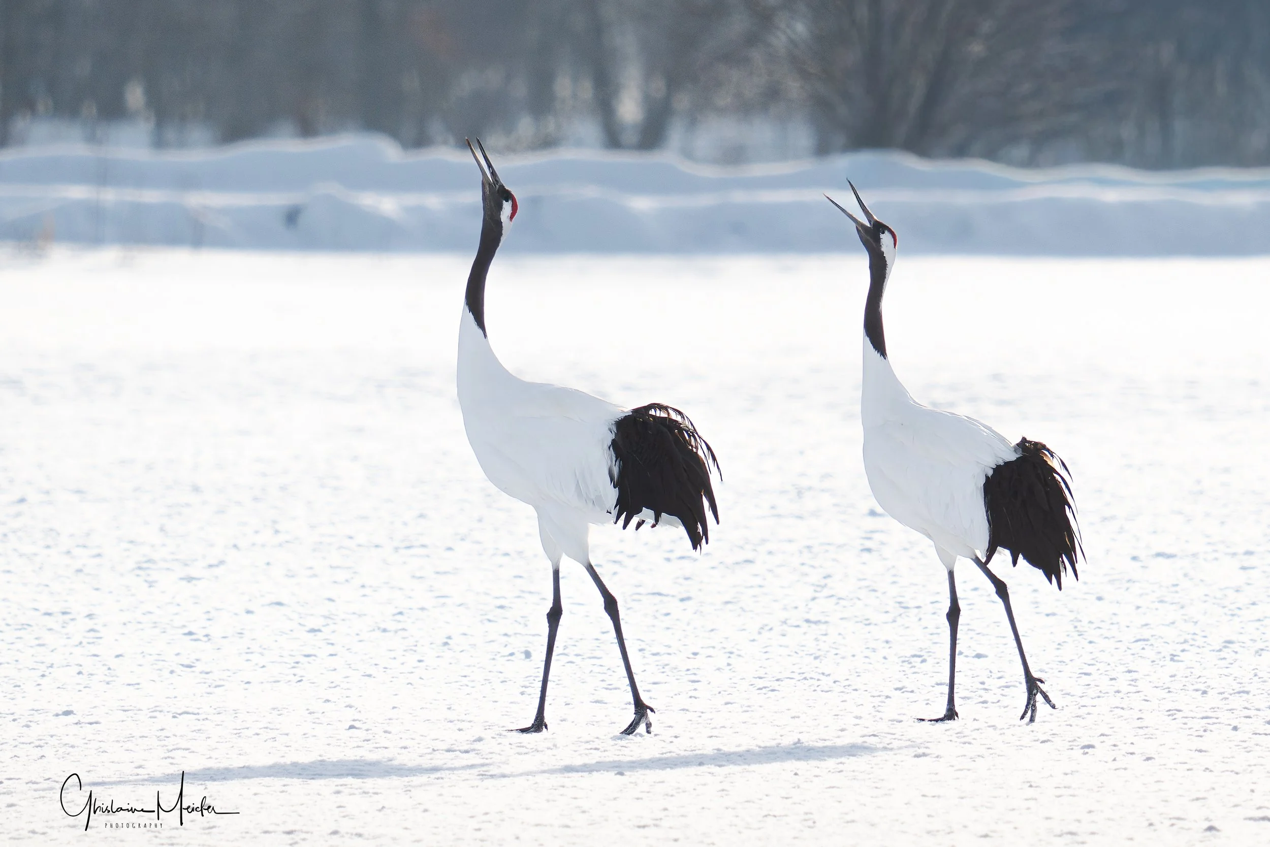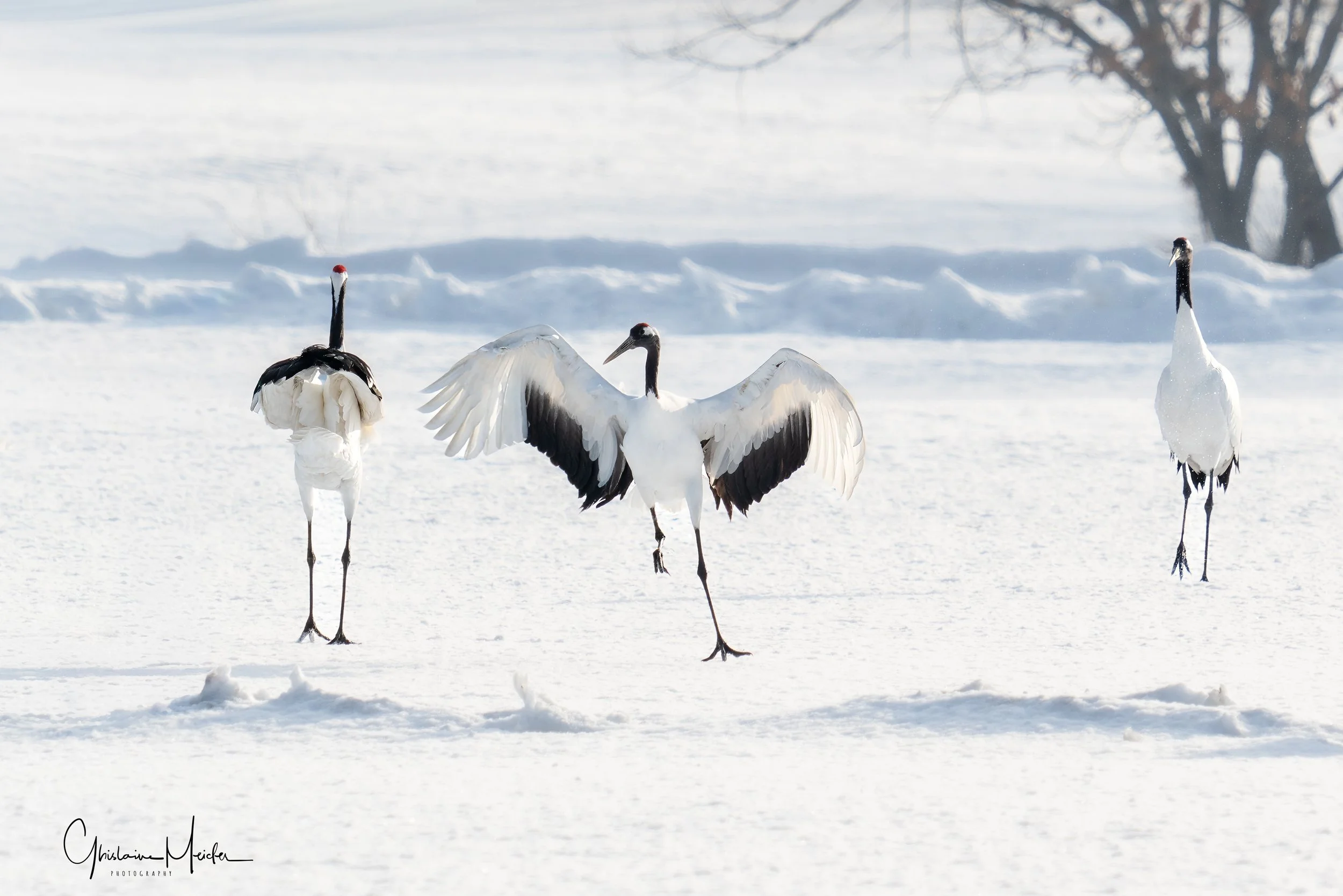Le lendemain, après une courte nuit nous nous rendons sur les sites de nourrissage des grues. Suivant les conseils d’un ami photographe qui nous a conseillé d’arriver tôt, nous nous levons à 4H pour assurer. Quelle bonne idée!! Seuls sur place, nous avons fini notre nuit dans la voiture et c’est seulement vers 8h que les photographes ainsi que les grues sont arrivées. On saura pour demain que l’on peut faire une grasse matinée.