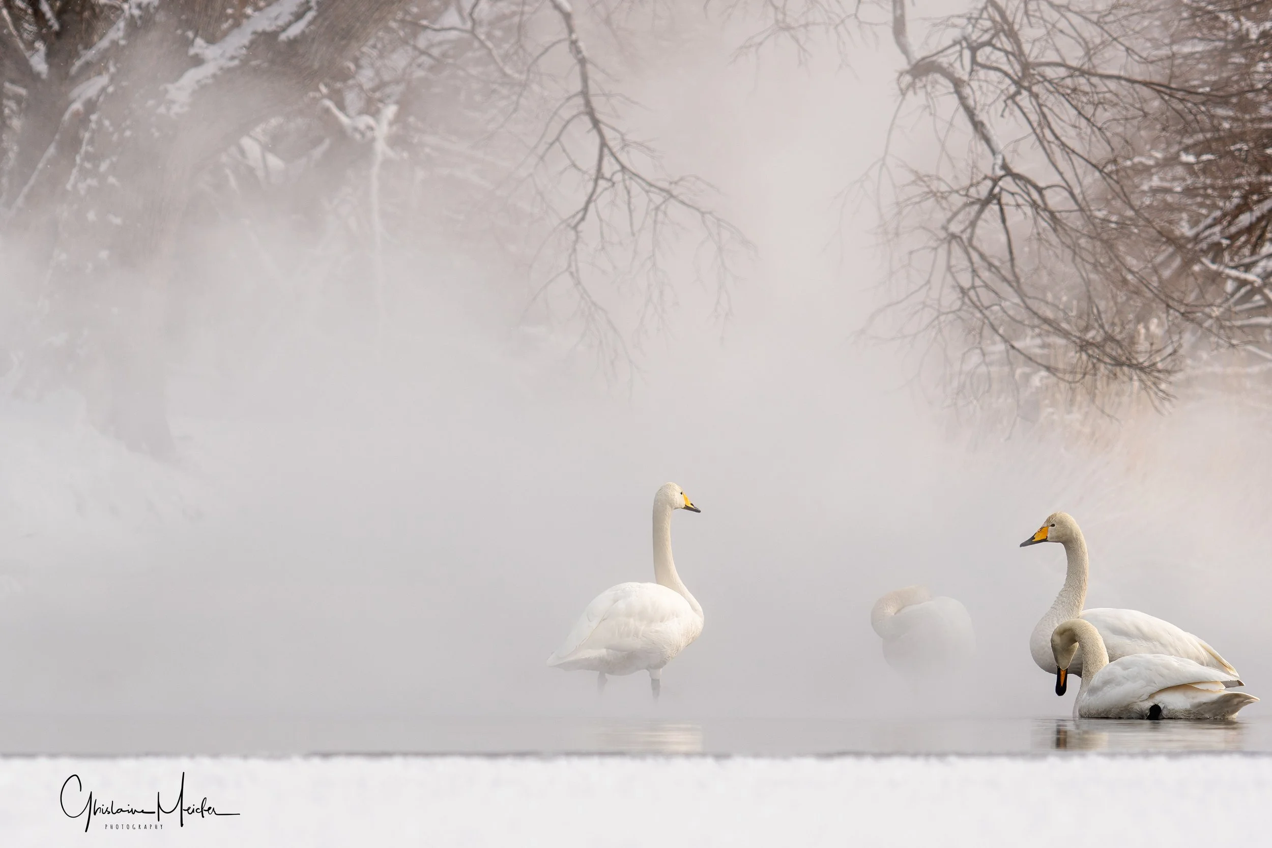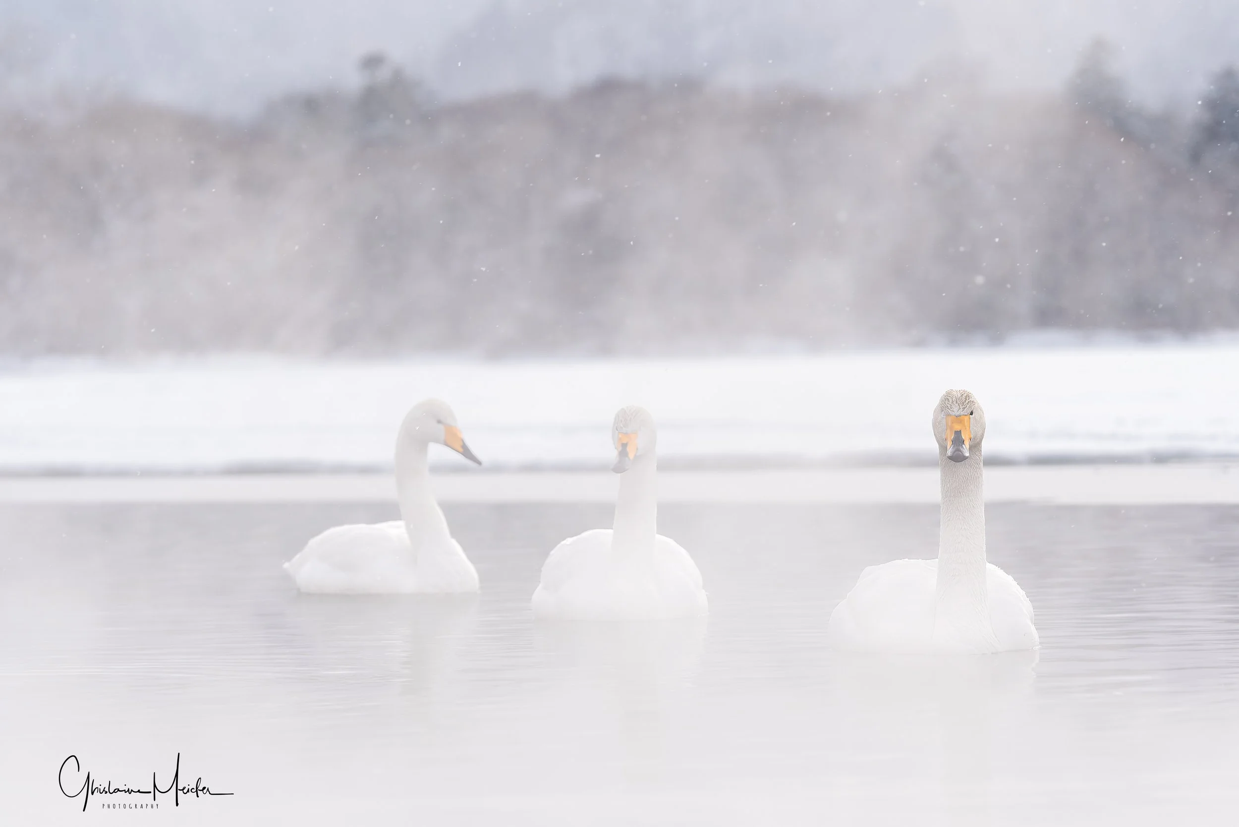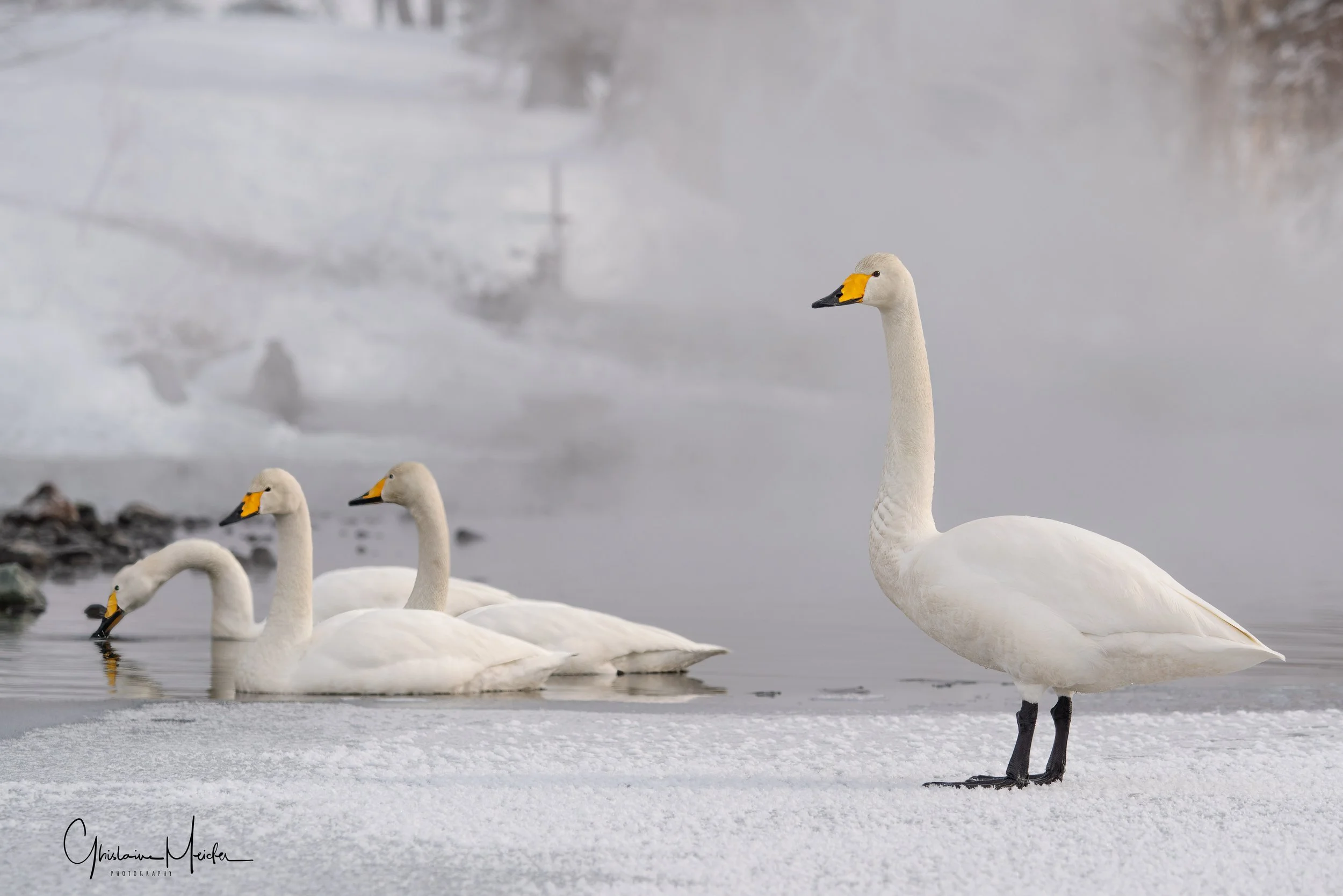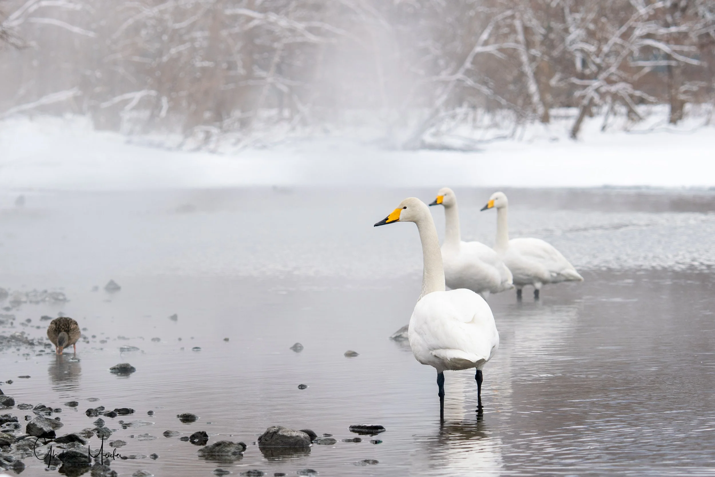 Ensuite nous nous rendons vers un autre lac dans les environs pour aller observer les cygnes chanteurs, également très gracieux et d’une grande douceur. iIs profitent des sources d’eau chaude durant l’hiver, sous les yeux des habitants venant profiter de l’ onsen situé juste à coté. Le cygne chanteur doit son nom à ses nombreuses vocalisations, il est en effet assez bruyant et émet régulièrement des sons et ce n’est qu’en hiver que le cygne chanteur peut être observé à Hokkaido.