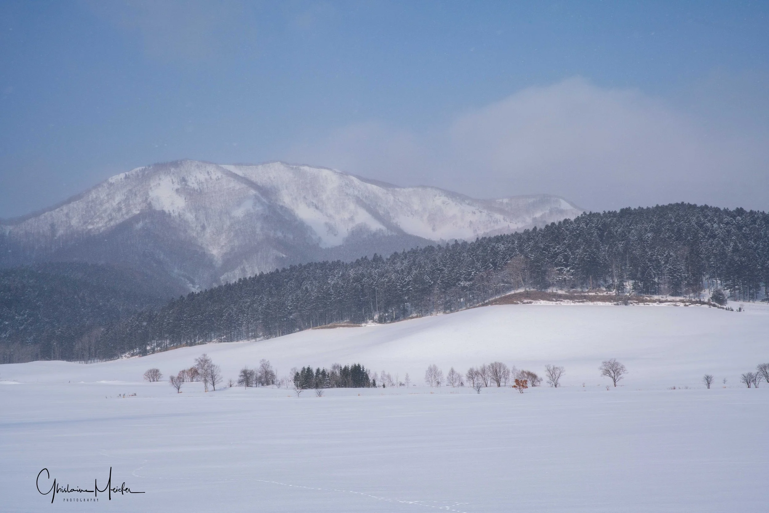Le paysage devient plus sauvage avec de grandes étendues vierges recouvertes de neige, dominées par les montagnes volcaniques avoisinantes. Il y a des monts Fuji partout !!!