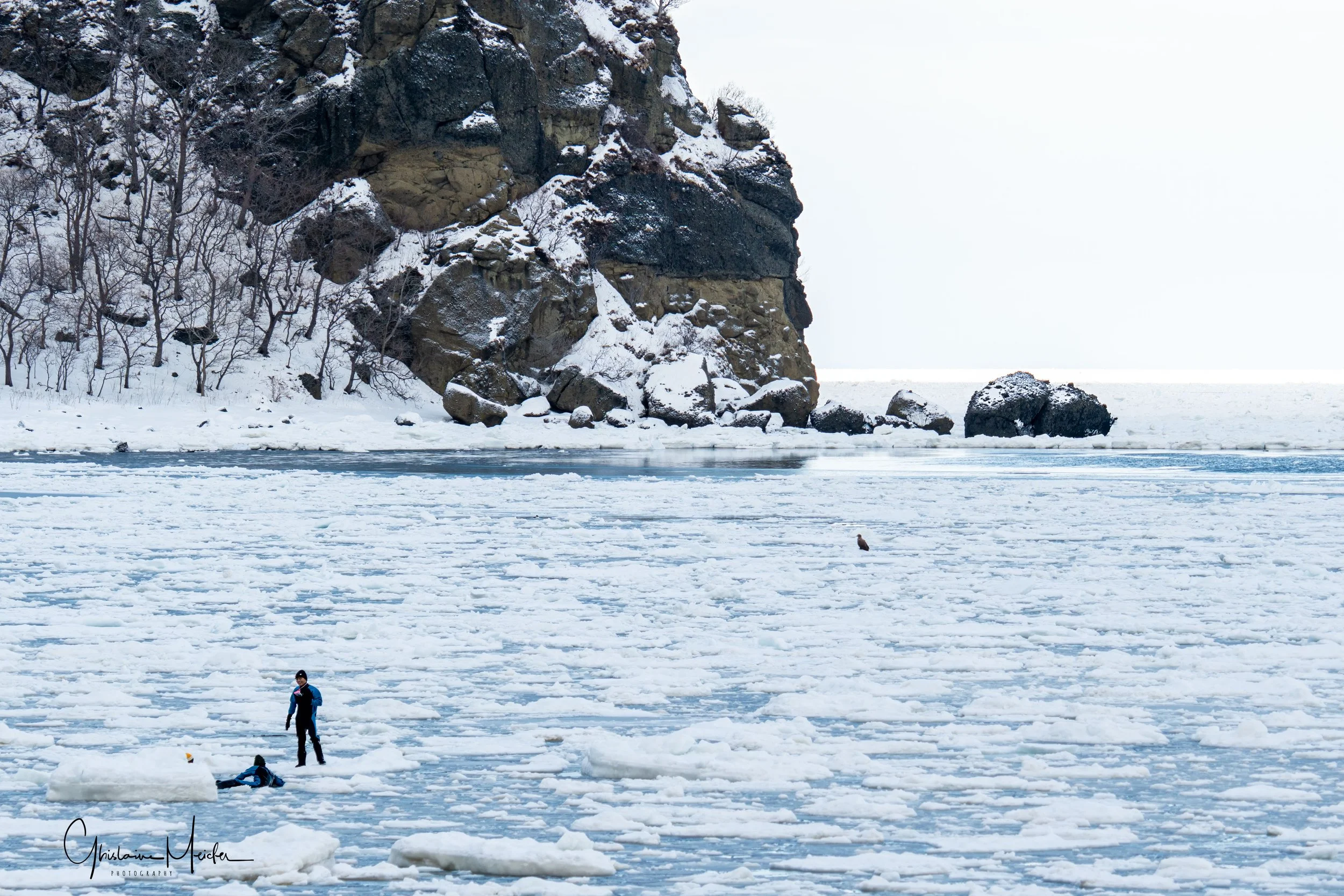 La région d’ Abashiri est célèbre pour l’observation hivernale de rapaces majestueux, notamment le pygargue de Steller et le pygargue à queue blanche dont l’envergure des ailes peut atteindre 2,5 mètres.