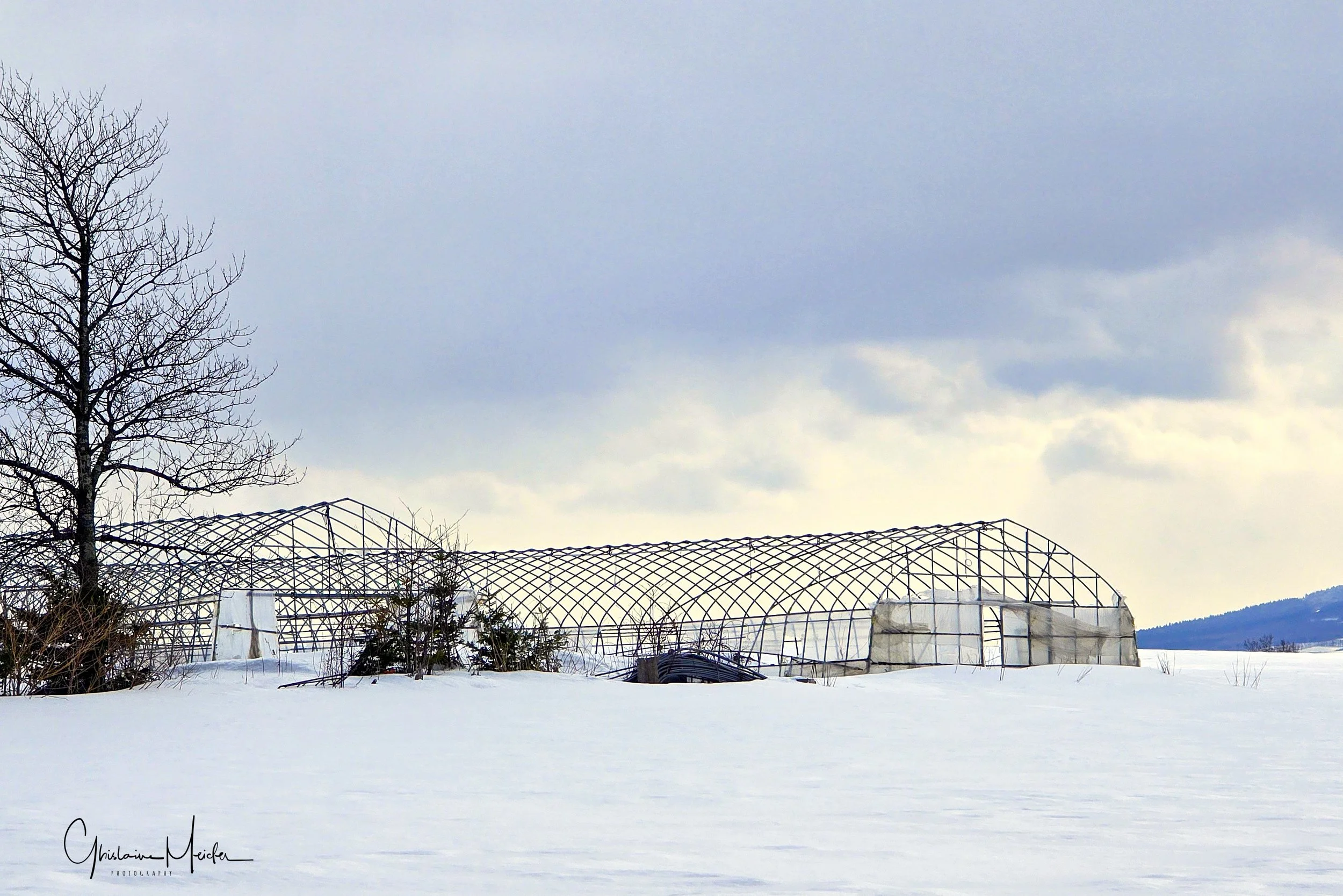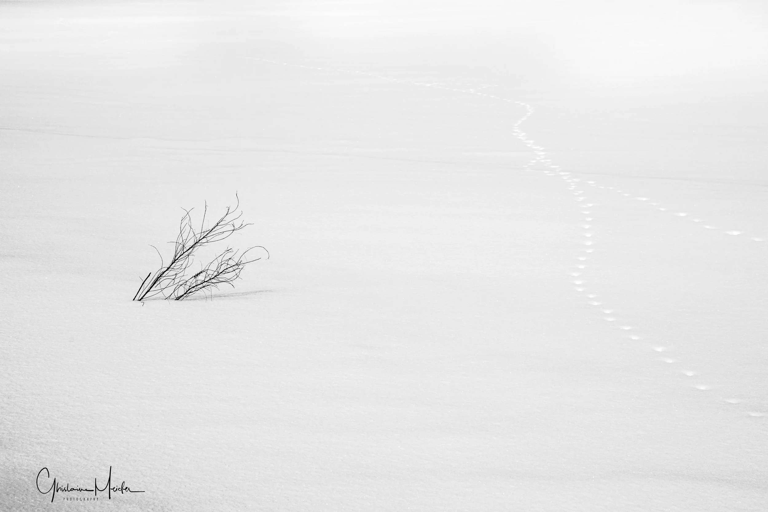 À défaut d'emprunter la route en voiture, nous l'empruntons à pied mais nous sommes vite obligés de faire demi tour car nous enfonçons trop dans la neige fraîche