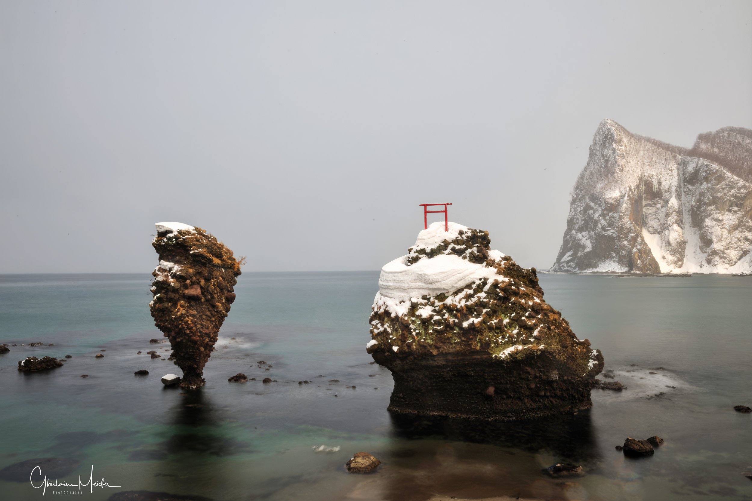 Un peu plus loin sur la côte, loin des touristes, les jolis cailloux d’ Ebisu et de Daikoku qui se baignent dans la Mer du Japon.