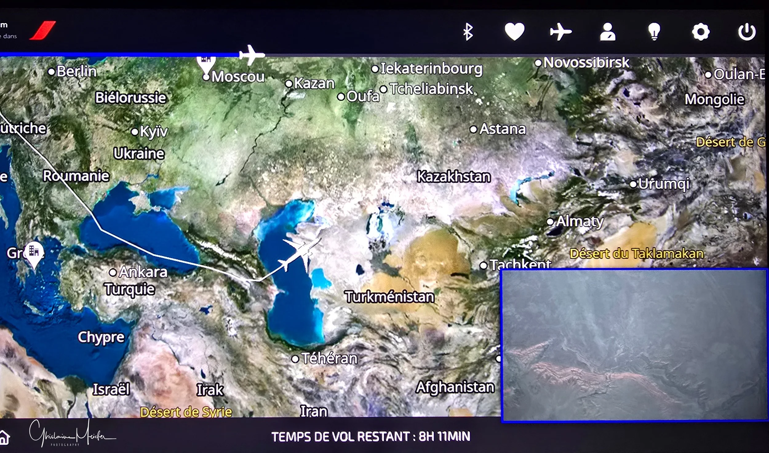 Mais un tel voyage se mérite car le trajet demande pratiquement 15h pour arriver à destination, le survol de la Russie étant interdit, le vol aller passe par le Sud et le vol retour passe par le Pôle.