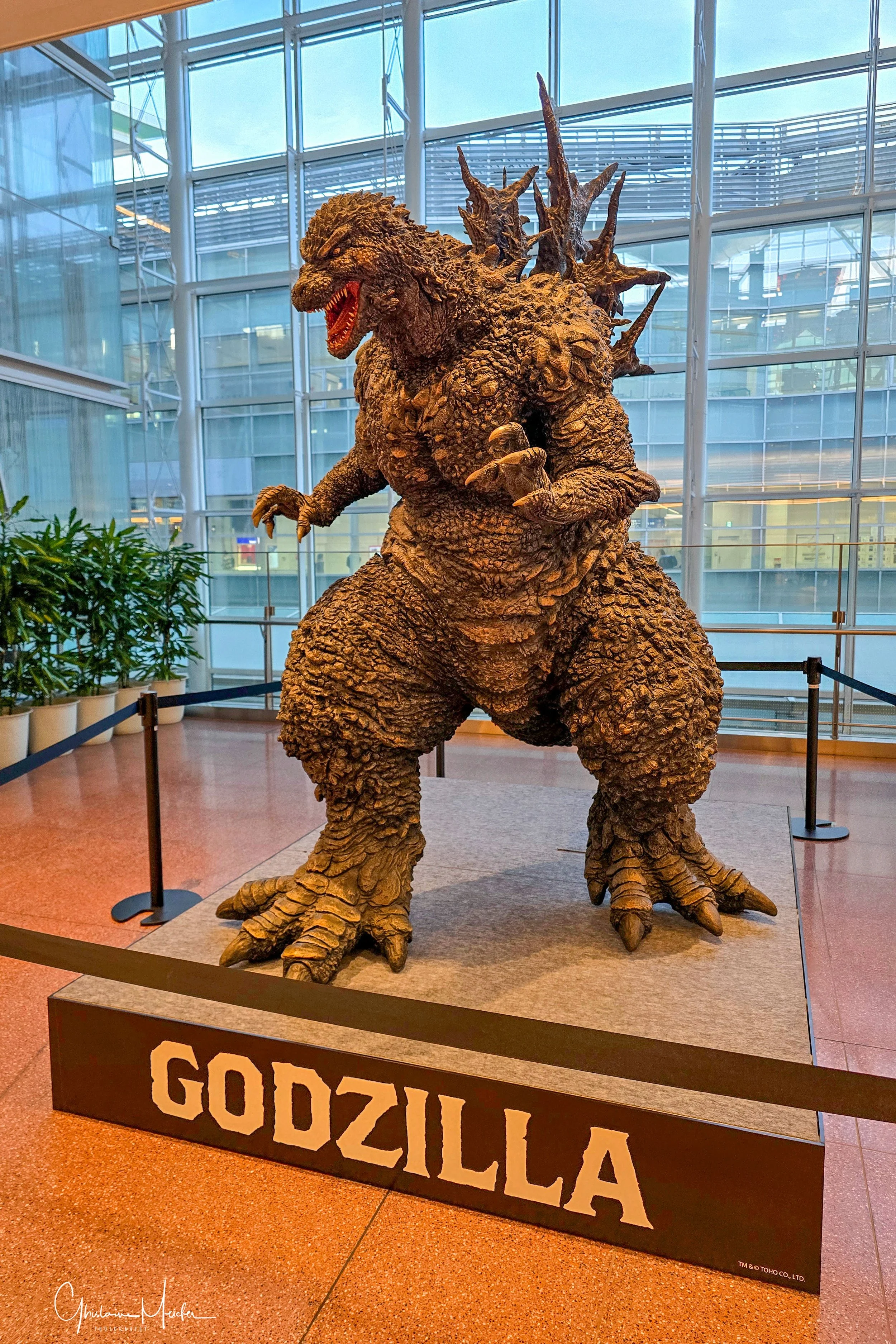 Premier vol Paris-Tokyo, où nous croisons Godzilla qui accueille les visiteurs, puis vol domestique pour Sapporo, où nous récupérons la voiture. Le voyage peut commencer. Mon chauffeur va devoir apprivoiser la conduite à gauche, les routes verglacées, les panneaux écrits en japonais et les feux de la circulation horizontaux, situés après le carrefour.